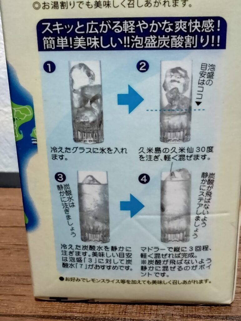 久米仙パックのサイドには美味しい泡盛の楽しみ方がのってるよ💛