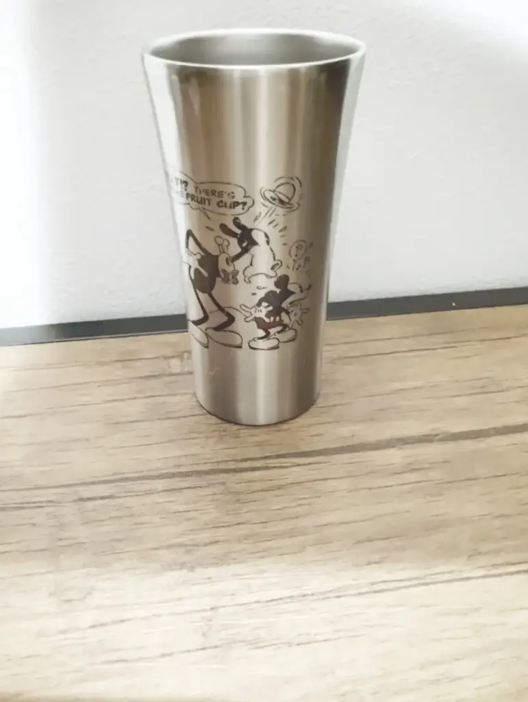ディズ二ーマグカップの鉄製(逆台形)をつかっています。先ず、カップに2センチの久米仙をいれます。
